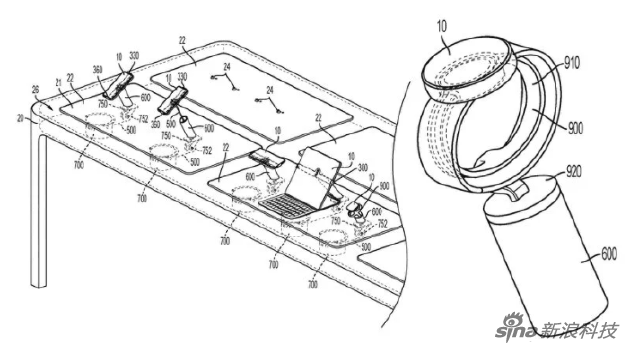 该专利方案中提到,在Apple Store的大桌子上固定一个“固定器主体”和“展示杆”,这些桌子具有一个“固定器支架”来固定设备。某些设备可能具有连接到支架的可伸缩“固定电缆”,以用于产品充电,并允许客户拿起设备体验。放置在显示杆顶部的磁铁可确保设备收回到预定位置。