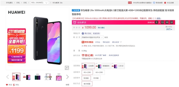 今天,京东618销量排行榜显示,华为畅享20e冲进6月14日销量榜前三名,该机售价是1099元(4GB+128GB)。