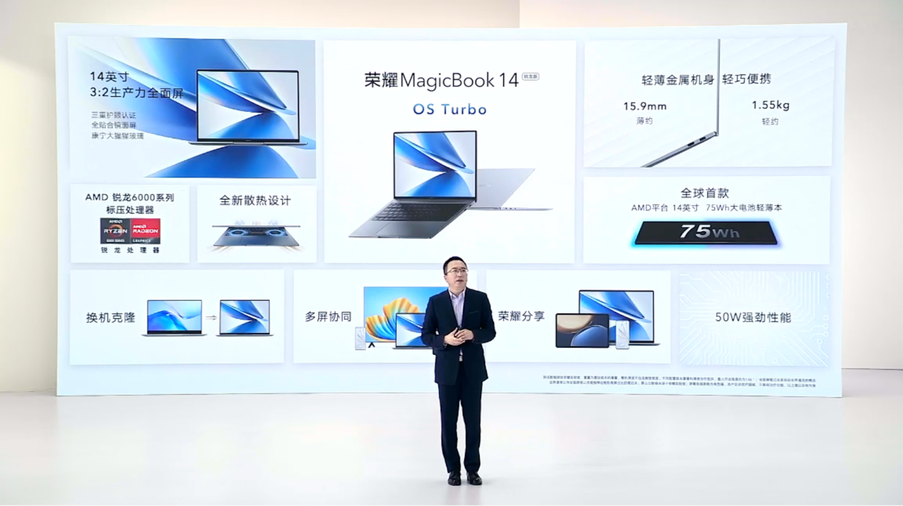 荣耀于7月21日晚举行新品发布会,发布旗下电脑新品荣耀 MagicBook 14 锐龙版,以及荣耀平板 8、荣耀智慧屏 X3 系列等新品。荣耀 MagicBook 14 锐龙版也是荣耀首款支持自家 OS Turbo 技术的 AMD 平台电脑。在发布会后,荣耀 CEO 赵明接受了包括凤凰网科技在内的媒体采访。