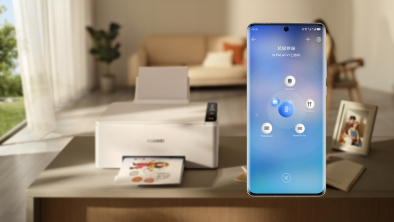 这一次华为PixLab V1的重磅升级之一就是搭载了HarmonyOS 3,作为首款搭载HarmonyOS的彩色打印机,华为PixLab V1将打印机智慧化推上了新的高度,不仅同样支持靠近发现,弹窗配网的可视化操作,而且还加入了超级终端,在升级至HarmonyOS 3的手机或平板上,拖动小球一拉即合,进入超级打印模式。打印入口整合归一,各种内容的打印,不再需要寻找手机不同应用各不相同的打印入口,无论打印什么都可以从容“印”对。