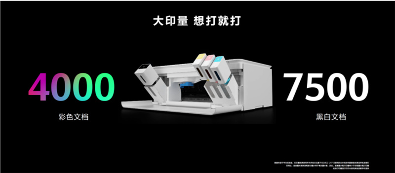 传统喷墨打印机更换墨水的操作往往让用户觉得复杂或困难,华为PixLab V1则是采用了更人性化的极简设计结构,采用了分离式墨水瓶设计,更换墨水瓶时只需要拿出旧墨水瓶,插入新墨水瓶即可,即插即用。并且华为PixLab V1一套四色臻彩墨水可以支持4000页彩色文档或者7500页黑色文档输出,大印量畅享打印自由。