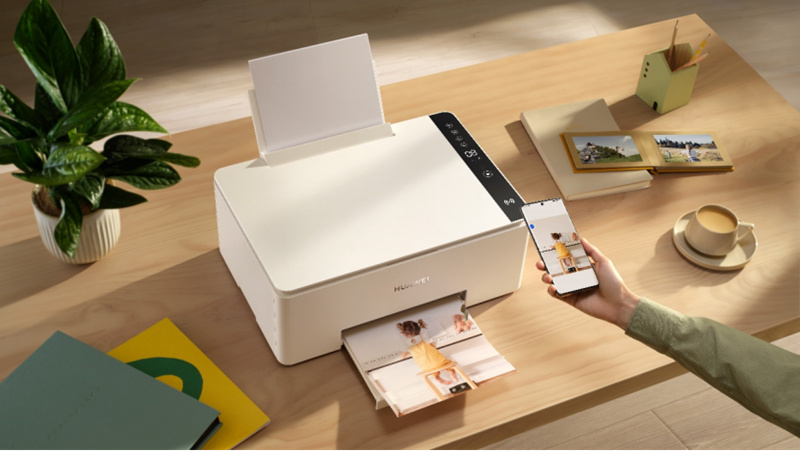 同时,为了改变打印机操作复杂的局面,华为PixLab V1在HarmonyOS 3的加持下也支持一碰打印功能,只需要将手机轻碰华为分享区域,手机中弹出打印预览界面,即可开始打印,大大降低了打印难度,即使是老人孩子都可以轻松打印。