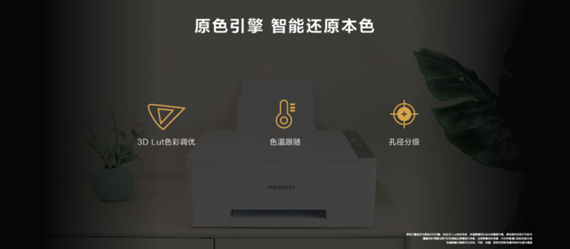 华为发挥在显示上积累的色彩处理技术优势,结合打印机特点,研发了原色打印引擎。通过自研的孔径分级校准、3DLut色彩调优以及色温跟随三大技术,精准使用彩色墨水,智能抓取环境光和屏幕色温,通过AI算法还原真实色彩,对上千种照片场景和颜色进行仿真、调优和测试,使照片更贴近屏幕显示效果,达到更好的色彩表现。