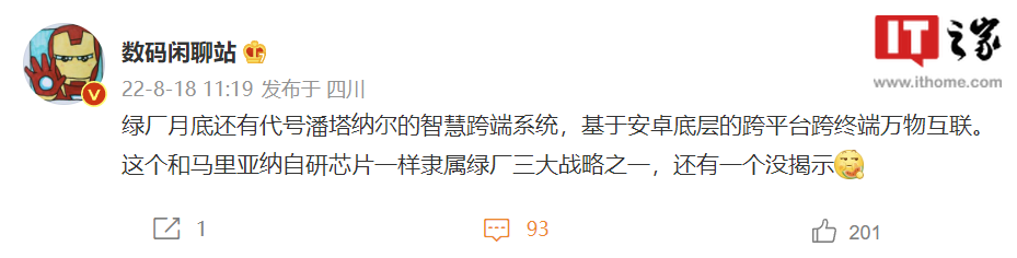 据数码博主 @数码闲聊站 爆料,OPPO 智慧跨端系统代号“潘塔纳尔”,可实现基于安卓底层的跨平台跨终端万物互联。该博主表示,智慧跨端系统和马里亚纳自研芯片一样隶属 OPPO 三大战略之一,另一个尚未公布。