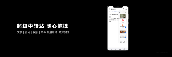 华为Mate50系列首发超级中转站功能:用户可以将需要发送的文字、图片、文件暂存在中转站内,在需要分享时,可随时切换到应用中粘贴使用。比如,在浏览器中选择文字、备忘录中选择图片、文件管理器中选择PPT,先暂存至中转站,再统一拖拽粘贴。同时超级中转站还适配更多三方应用,支持跨层级、跨应用混选内容,拖拽内容可多次调用,让用户用最符合直觉的操作,实现高效直观的信息流转方式,从而带来更高效、更便捷的使用体验。