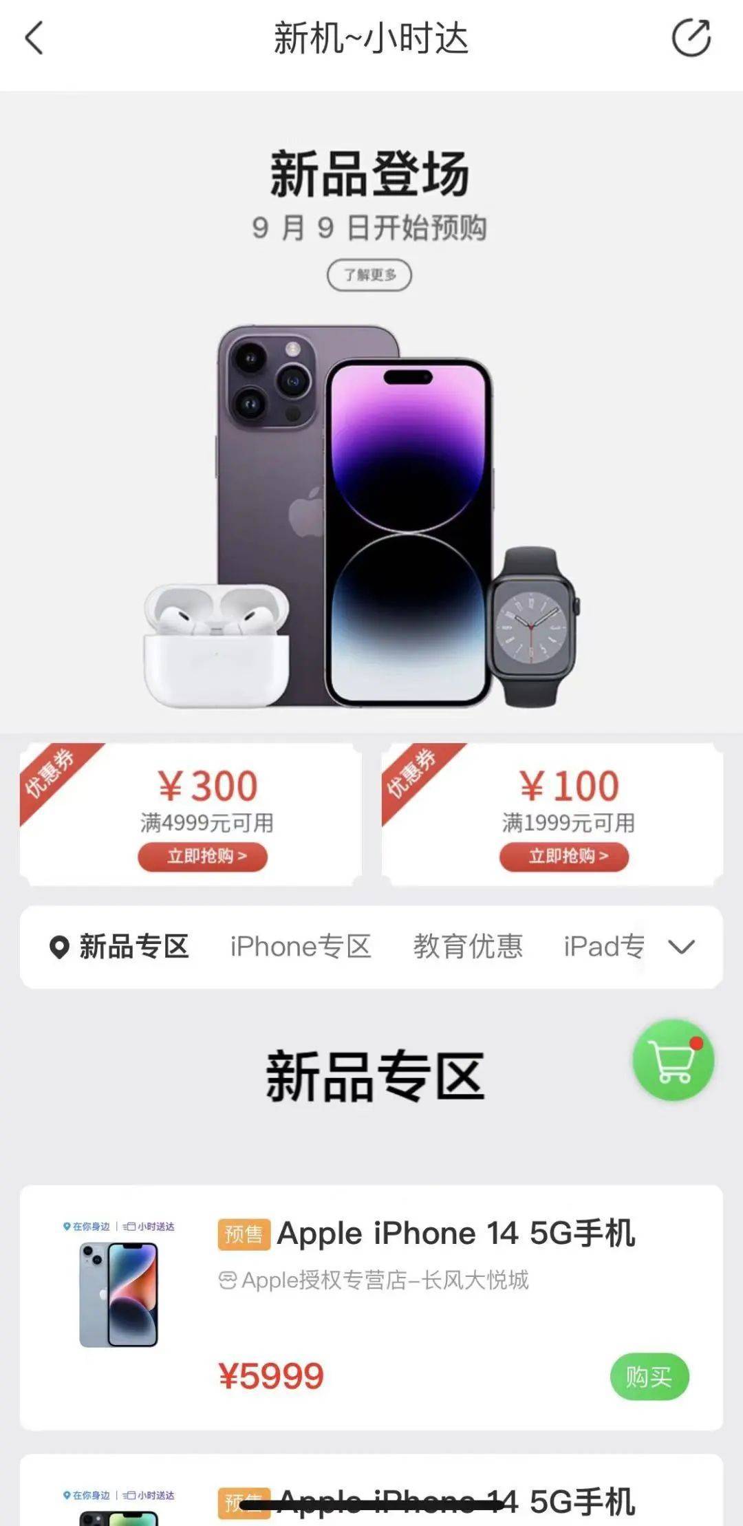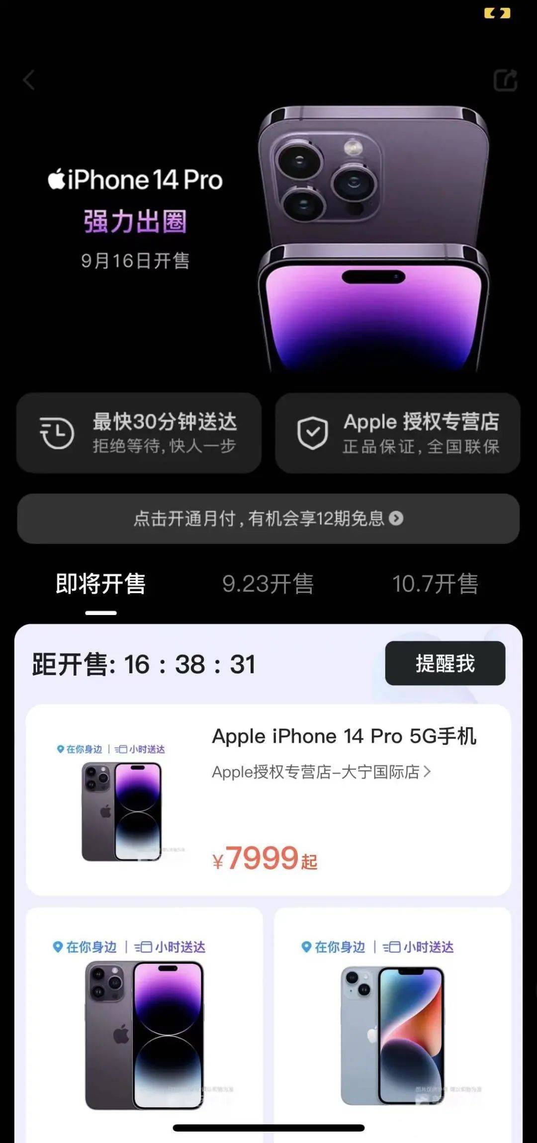 为了iPhone 14,美团和京东也行动起来,提供“外卖”服务,消费者无需线下排队、无需预约等待,躺在家中骑手便会送货上门。但前提是,手速要快,抢到iPhone 14才可以。