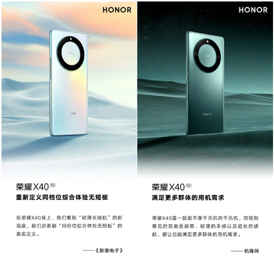 例如,TechWeb表示荣耀X40“成为新一代‘实力霸屏’的跃级标杆”,手机之家认为“荣耀X系列,你永远可以相信,对于千元档这一块,荣耀X40完全可以闭眼入”。新潮电子评价说“同价位综合体验无短板”,机锋网感叹其为“最不像千元机的千元机”,PChome预言“下半年安卓手机全档位单品销量冠军,荣耀X40很有机会去冲击”,中关村在线则表示“一台千元机的表现不亚于旗舰机”……从多方媒体的评价不难看出,荣耀X40的确非常值得入手。