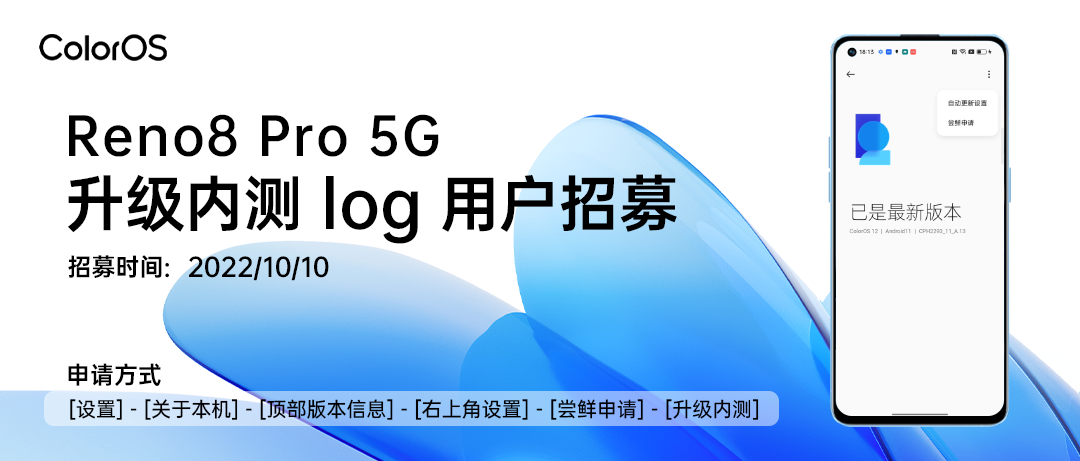 今日,OPPO Reno8 Pro 5G 开启了 Android 13×ColorOS 13 升级内测 log 版本招募。