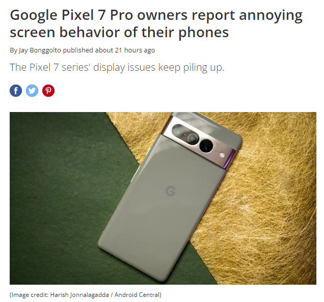 谷歌 Pixel 7 系列刚上市没几天就出现了很多问题,继此前被曝屏幕比其它手机更耗电之后,现在又有用户吐槽 Pixel 7 Pro 屏幕的又一个问题。