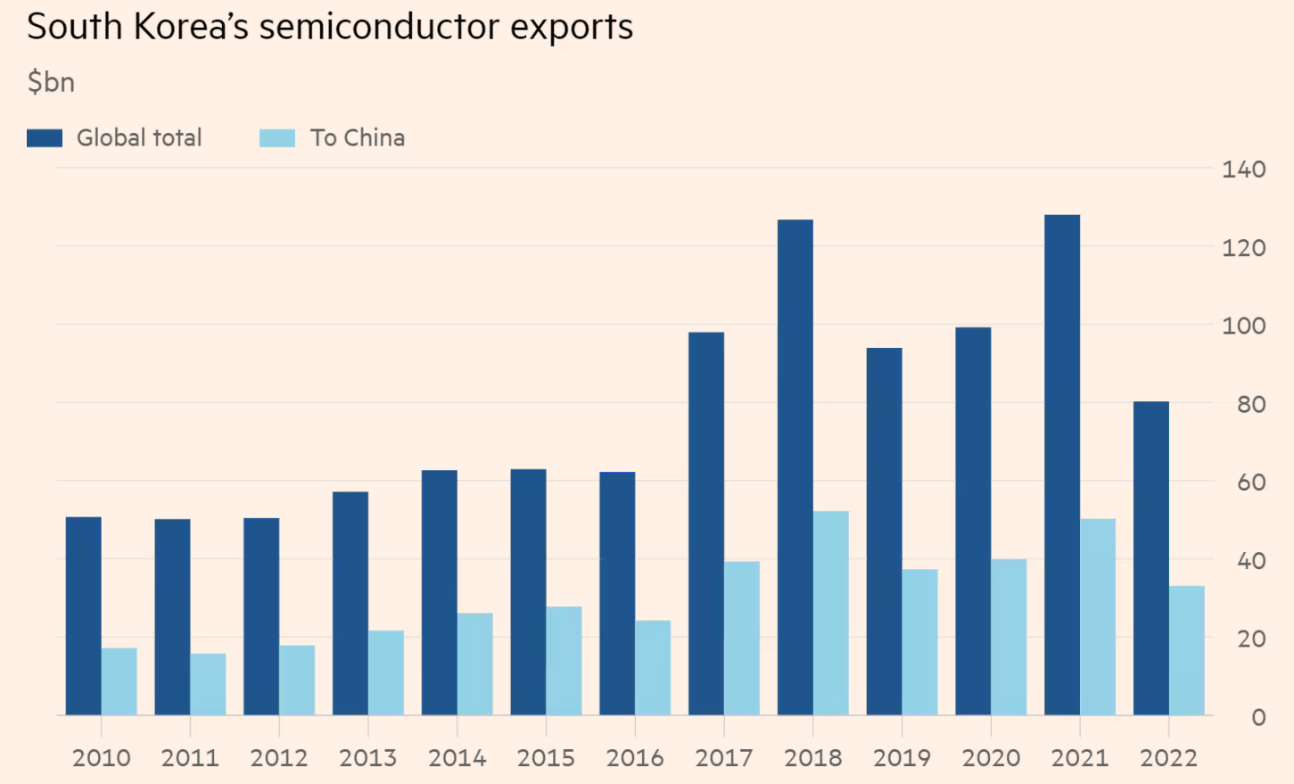 半导体是韩国经济的最大收入来源,由于货币疲软扩大了贸易逆差和全球利率上升,打压了消费者对该国技术出口的需求,韩国经济在上个季度放缓。