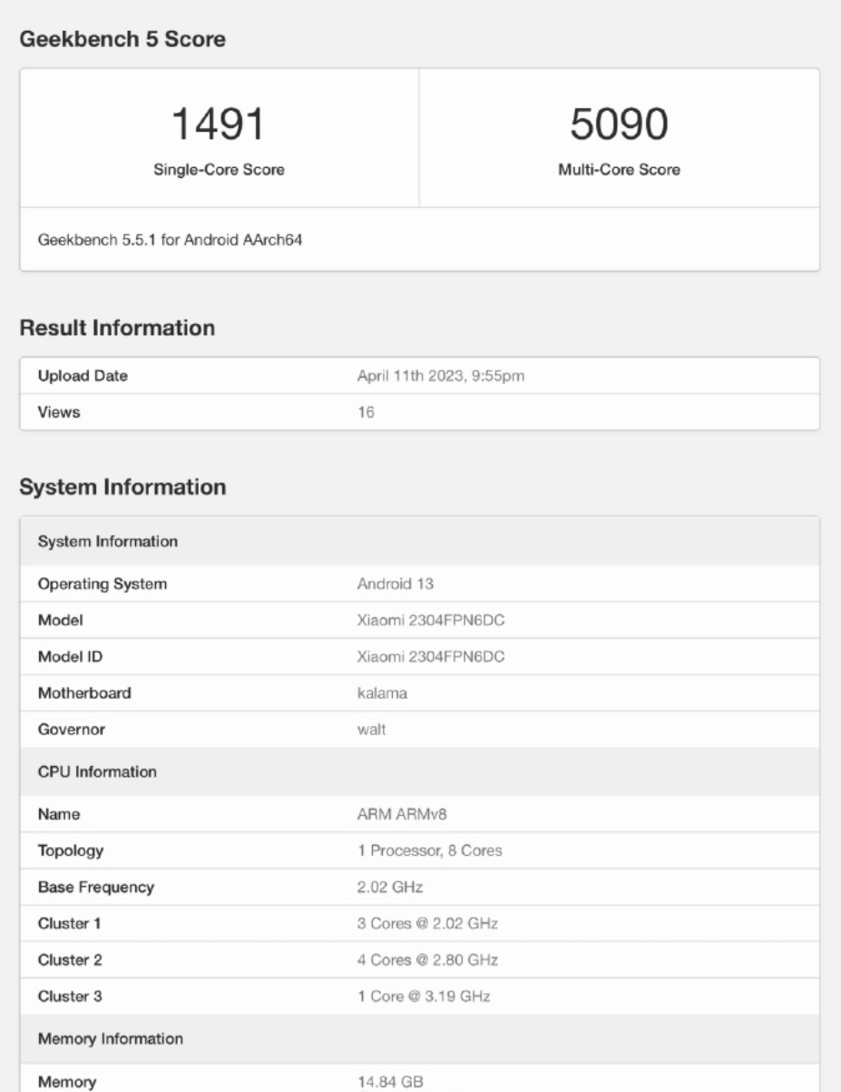 小米 13 Ultra 徕卡影像旗舰手机定档 4 月 18 日发布,在发布前几天,该机出现在了 Geekbench 5 跑分平台,确认搭载高通骁龙 8 Gen 2 处理器。