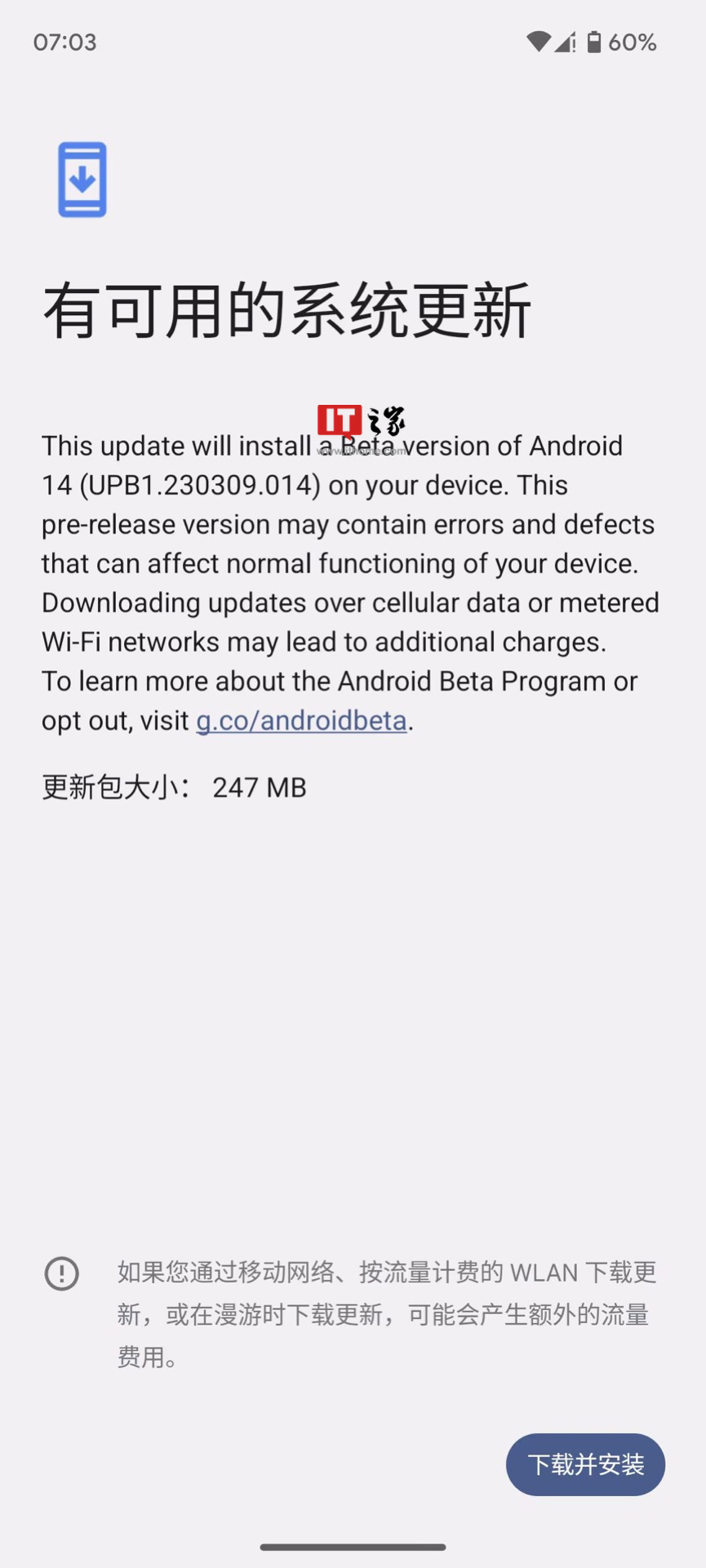 ▲ 已有 I 之家小伙伴收到了更新,大小 247MB