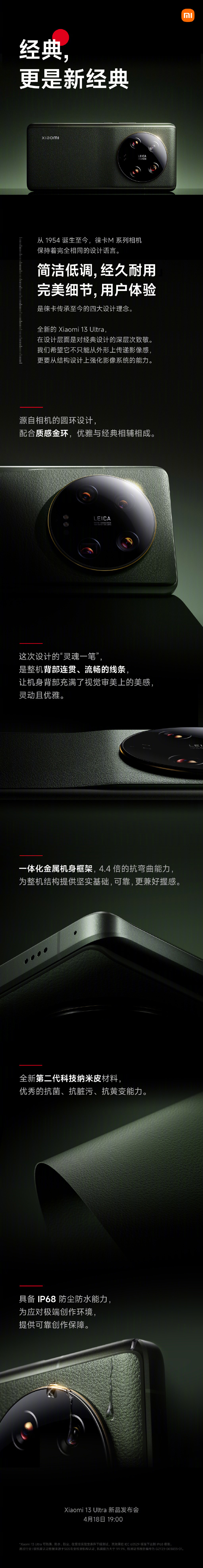 根据小米官方介绍,小米 13 Ultra 搭载“第二代科技纳米皮”,抗菌能力达 99.9%,拥有更接近相机饰皮质感,以及更佳的抗脏污能力。