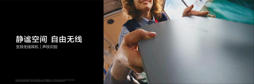 不仅如此,华为MateBook D 16新品还搭载了自研“静谧空间通话”技术[15],配合部分无线耳机或有线麦克风耳机,不仅能抑制周围环境噪音,更可通过声纹识别筛选,实现人声噪音的消除。让用户的声音在办公室、咖啡厅、交通途中等场景中都被聚焦,清晰呈现。