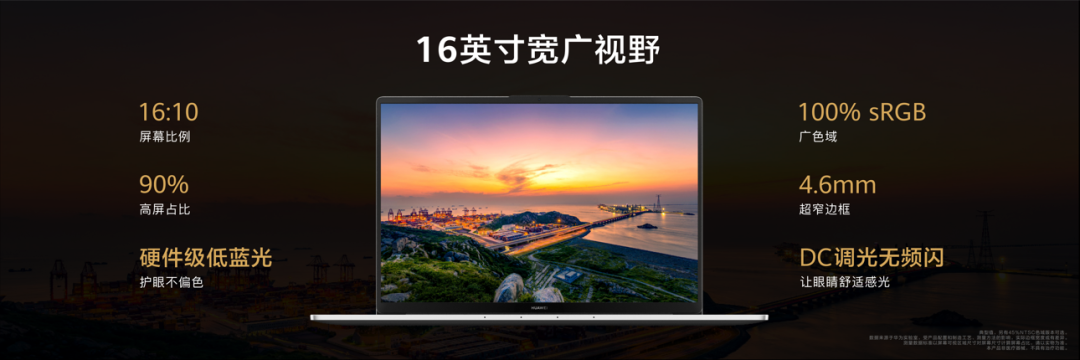 工欲善其事,必先利其器,对于重度办公人群而言,出色的屏幕能为其提供高效舒适的办公体验,华为MateBook D 16新品承袭家族式全面屏设计,采用16英寸16:10的黄金比例全高清 IPS防眩光屏,左右框仅4.6 mm,屏占比高达90%[9],1920x1200屏幕分辨率,相比于传统的1080P屏幕,增加11.1%的像素数,纵向可视面积更大,带来更开阔的视野,看图表、数据、文档更便捷。此外,该屏幕还支持100sRGB%广色域(典型值),令显示效果更为出众。在观看网页、高清图片或视频时,栩栩如生的生动细节跃然于目。