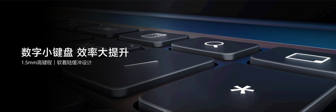 键盘作为高效的输入工具,使用频率非常高。好键盘不但要有丰富的功能、舒适的手感,还要持久耐用。华为MateBook D 16键盘采用Soft-landing软着陆设计,拥有1.5mm的高键程和配备物理快捷键的数字小键盘,让用户在输入大量数字时手部移动空间更小,效率更高、更加便利,对于重度办公人群更友好,同时给予忙碌工作的用户愉悦体验。