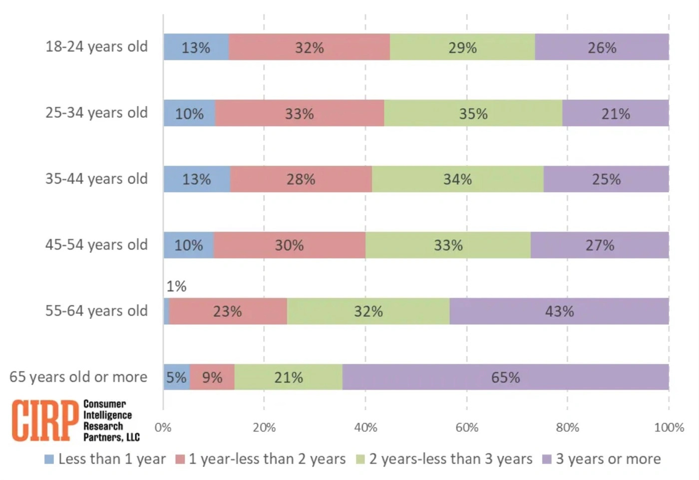 CIRP 于今天再次发布新的研究报告,主要调查不同年龄段苹果用户更换 iPhone的周期。
