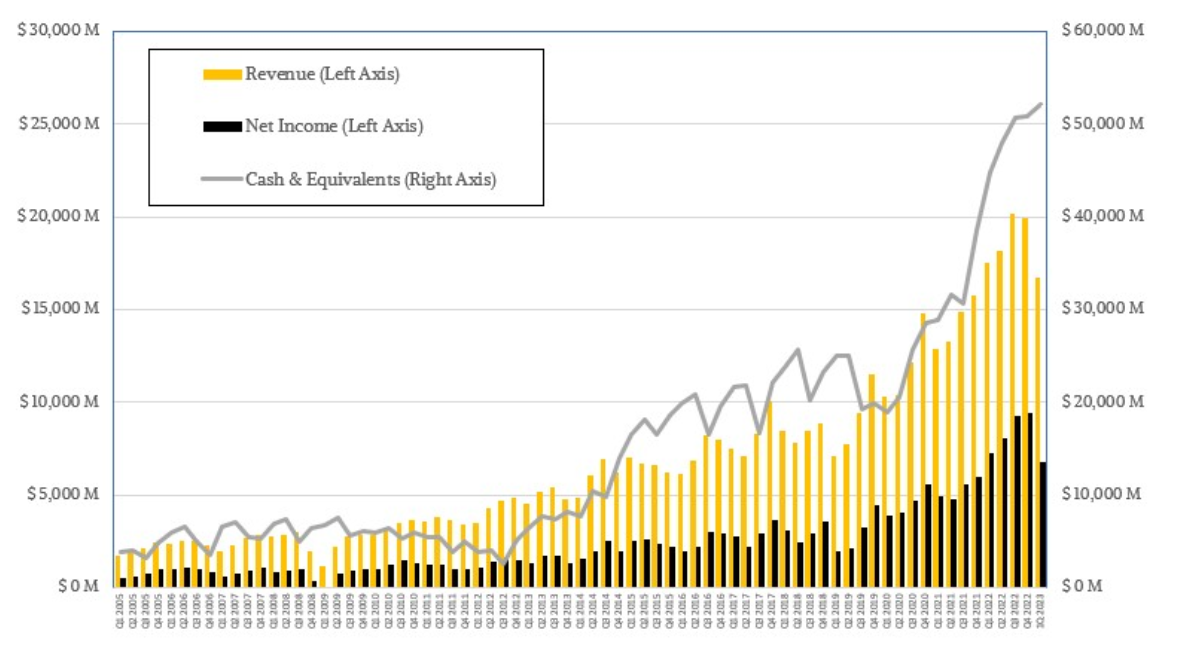 2008年底至2009年初经济大萧条时就是如此,2015年下半年、2018年底和2019年上半年也是如此。一些下降与个人电脑和智能手机市场的变迁有关,另一些则与制造工艺的转变有关。奇怪的是,在新冠疫情于2020年初袭来并持续两年多的时候,其自身却没有出现经济衰退(即连续两个季度衰退),相反,智能手机、个人电脑和高端服务器处理器需求高涨,在转向居家办公时,台积电克服了所有这些经济不确定性,满足了这一巨大的需求浪潮。