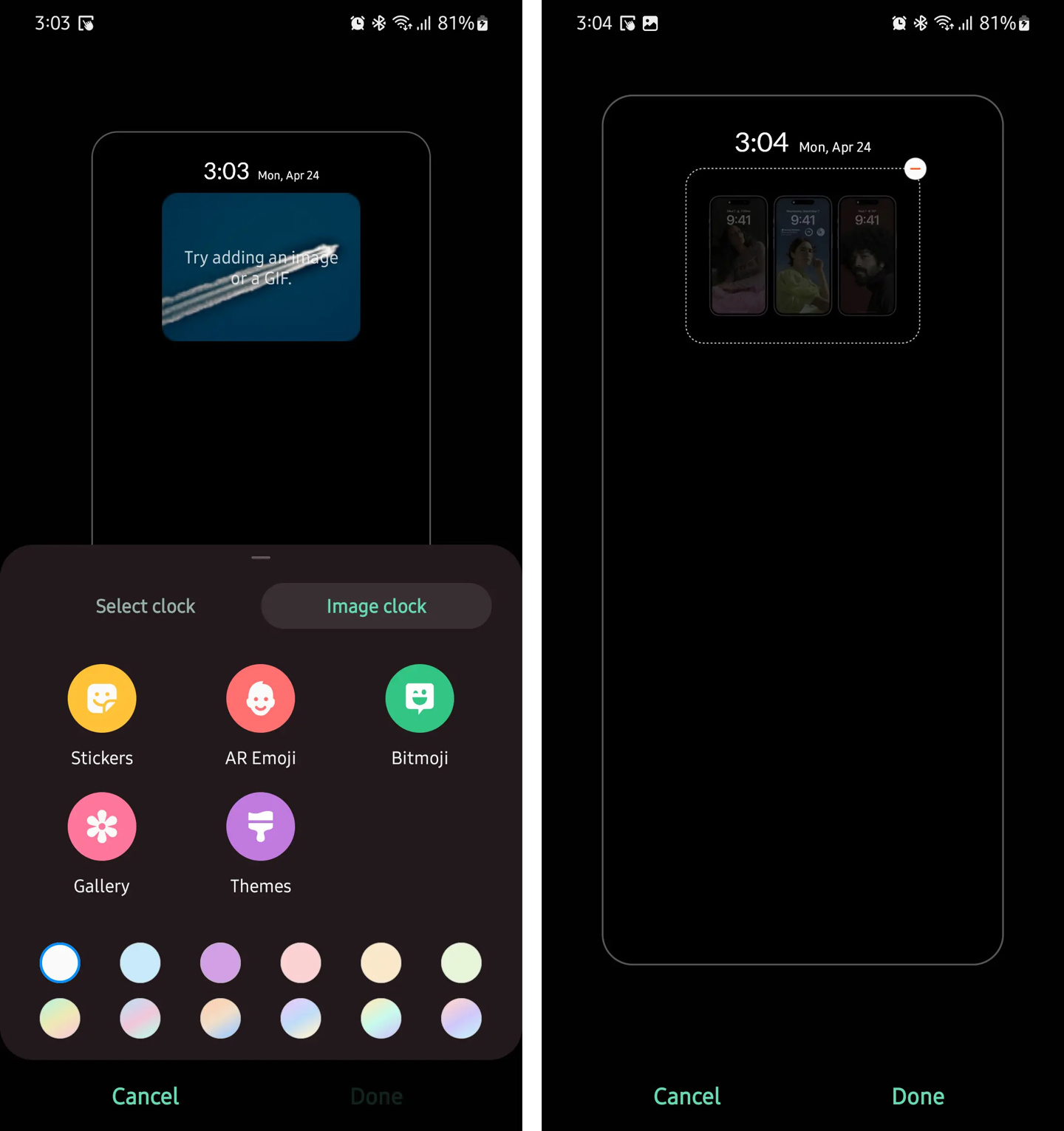 注:三星当前已允许用户使用“Image Clock”选项,在 AOD 页面自定义照片。不过这些自定义显示仅限于一个小窗口,无法全屏显示自定义图像、GIF 和照片。