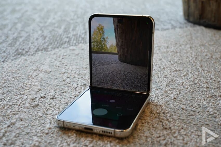 此外,使用水滴铰链的 Galaxy Z Flip 5 在屏幕闭合方面表现不错,折叠后的缝隙看起来较小。展开来看,Galaxy Z Flip 5 的折痕表现依旧不错,在真机图中很难看到折痕。