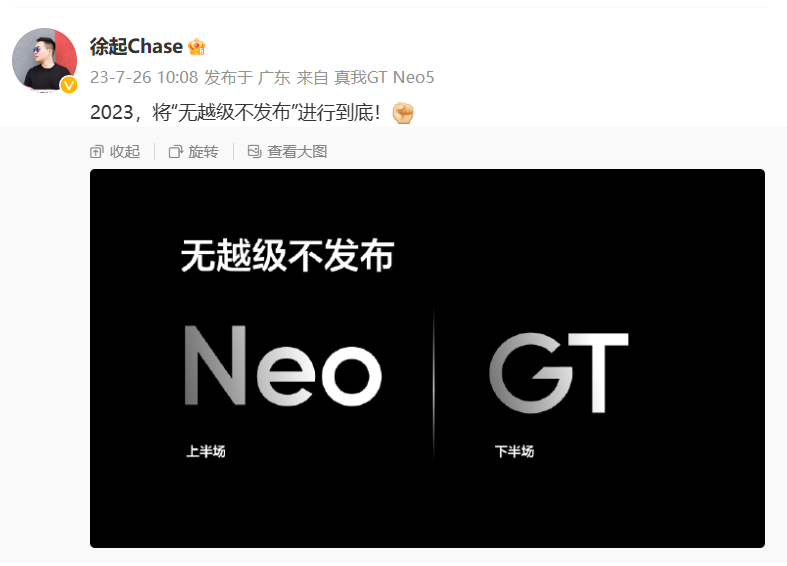 根据真我 realme 副总裁、全球营销总裁、中国区总裁徐起的最新消息,realme 确认将在年内推出 GT 系列新品,而在此之前,还有一款 Neo 系列新机发布。