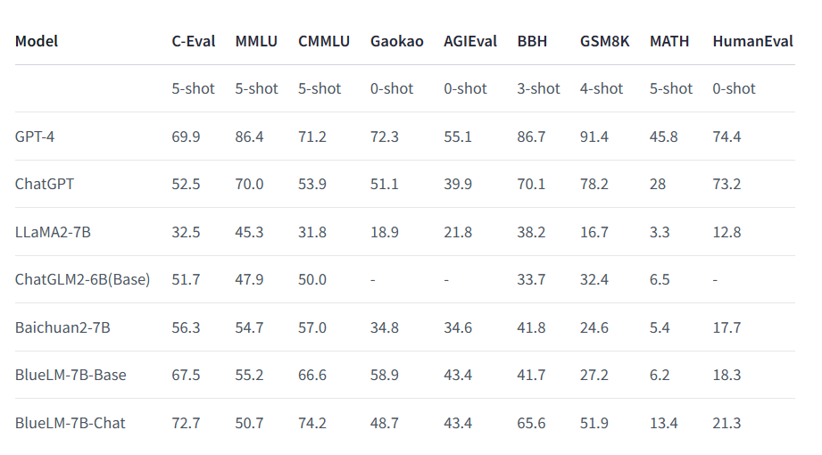 BlueLM-7B 开源大模型包括 7B 基础模型和 7B 对话模型,同时 vivo 开源了支持 32K 的长文本基础模型和对话模型。