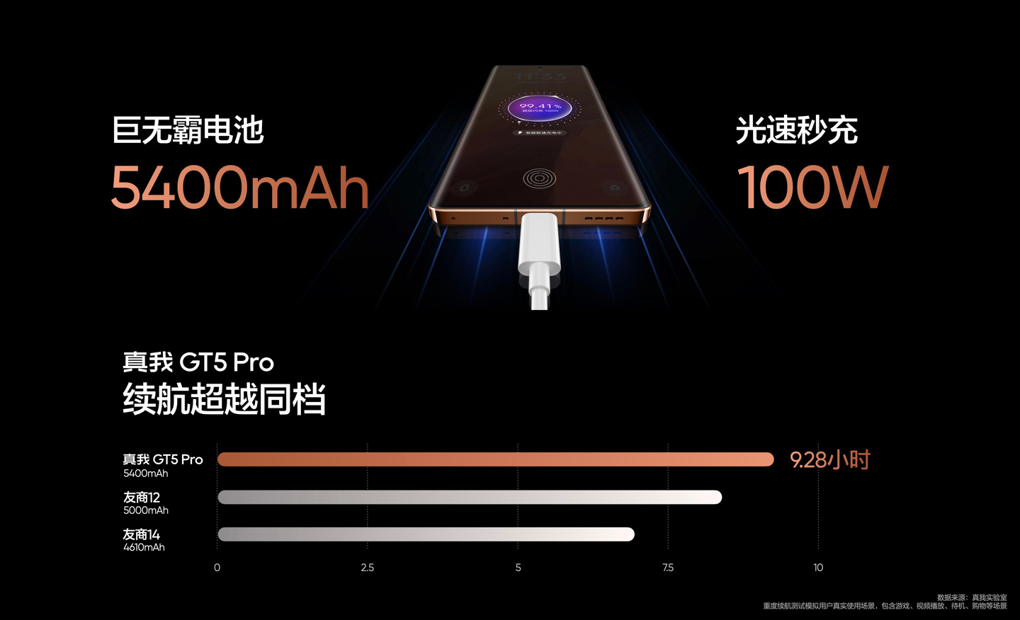 真我 GT5 Pro 搭载 5400mAh 巨无霸电池,支持 100W 光速闪充,且首次搭载 50W 无线闪充,同时推出 AIRVOOC 50W 无线闪充底座,售价 329 元。新机还支持 USB3.2 ,提供最大 1TB 存储。