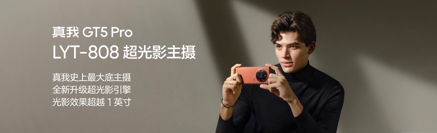 影像方面,真我 GT5 Pro 采用全新超光影影像体系:搭载索尼双旗舰光影镜头,超光影引擎算法全面升级。新机后置 50MP 主摄(索尼 LYT-808,1/1.4",OIS)+ 8MP 超广角微距(索尼 IMX355)+ 50MP 潜望长焦(索尼 IMX890),支持长焦微距。前置 32MP(索尼 IMX615)摄像头。