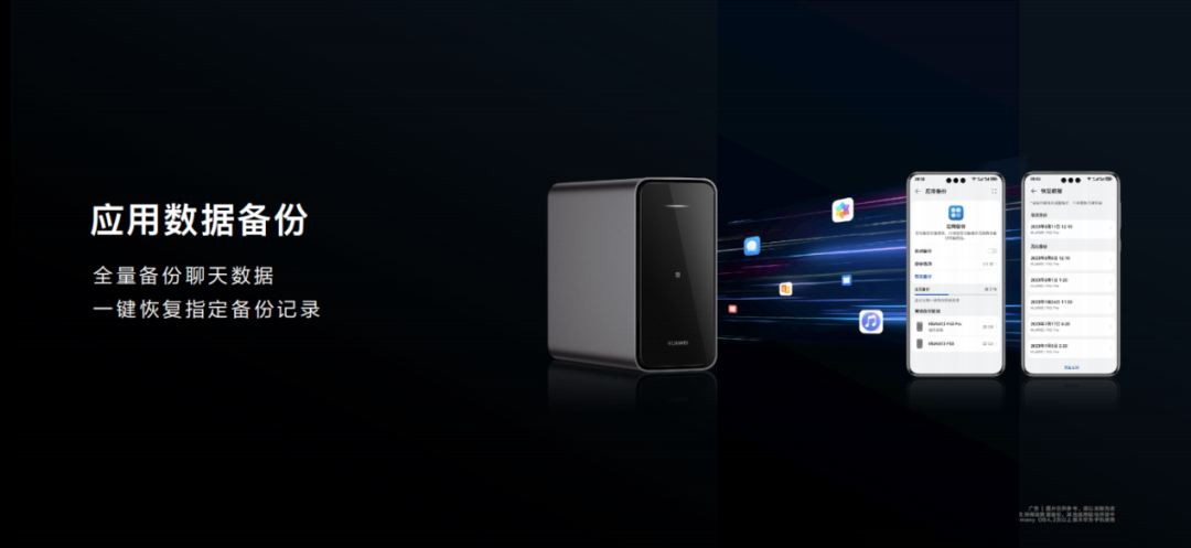 2024年5月15日,在华为夏季全场景新品发布会上,华为家庭存储正式发布「应用数据备份」功能。该功能的发布意味着NAS领域首次打通终端应用数据链路,实现应用数据的全量备份。基于HarmonyOS 4.2全新升级带来的「应用数据备份」功能,可帮助用户释放手机应用中聊天记录、照片视频、工作文件挤占的手机存储空间,堪称“手机扩容神器”。其智慧安全的存储体验,能帮助广大用户妥善保存管理手机应用中的聊天记录,为全家人打造“美好记忆的保险柜”。