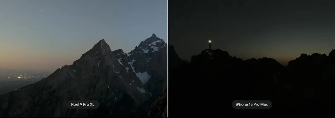最后,谷歌还直接对比了 iPhone 15Pro Max 和 Pixel 9 Pro 的拍照效果。谷歌高管肯尼 苏莱蒙(Kenny Sulaimon)展示了 Pixel 9 Pro 的夜景全景模式,并将其与 iPhone15 Pro Max 的照片进行了对比,暗指苹果的夜景拍摄效果较差。
