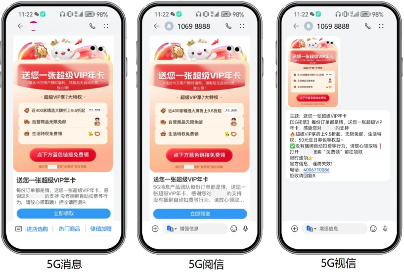 阅信是中国移动 5G 消息的多媒体形态之一,通过短信入口提供服务,无需下载、关注即可使用。