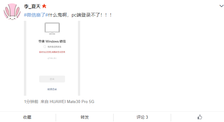 今日早间,大量网友表示微信电脑版微信无法登陆,扫码登陆后提示“暂时无法登录,请重新尝试登录”。从微博网友的反馈来看这种现象存在于大范围用户中,腾讯官方目前尚未回应,疑似微信服务器故障。