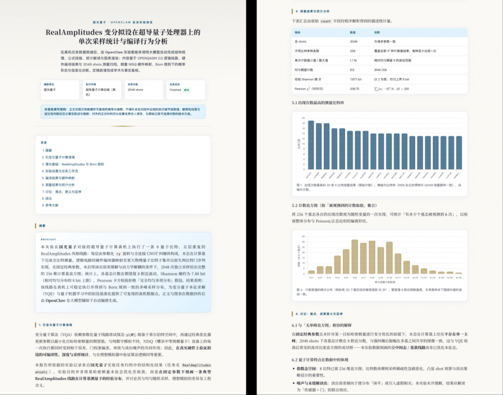 我们这次把目标定得很克制:用户提出一个与变分量子线路相关的任务描述——这类做法在量子机器学习里很常见,也被很多人看作量子算力将来可能参与大模型训练的一条重要思路——系统便能够自动完成一个小规模的量子计算实验,再给出一份人人都能读懂的报告。听起来只是一句话的事,但对于人类学者而言,完成这一切可能需要很长时间的知识积累。