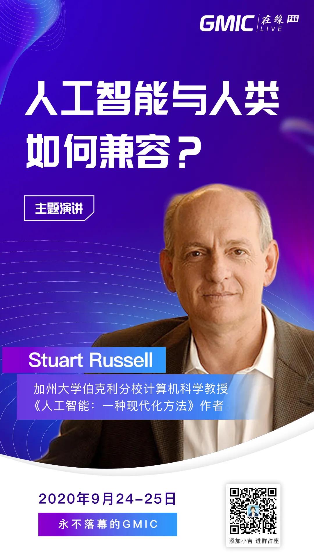 Stuart Russell 教授将作为 9 月 25 日 GMIC 在线 Pro-美国·硅谷站的开场嘉宾,就「人工智能与人类如何兼容?」发表主题演讲,全面分析“AI”和“人类”的兼容关系。