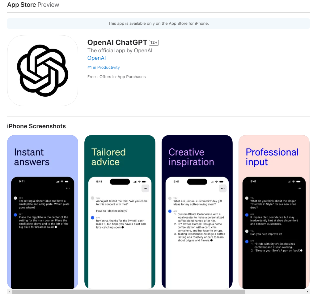 OpenAI 于今天正式宣布适用于 iPhone和 iPad的 ChatGPT 官方应用程序。