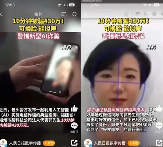 在我国,“AI诈骗”成为近期社会关注的方向之一。日前,内蒙古包头警方通报一起利用AI实施诈骗的案件,福州市某公司法人代表郭先生10分钟内被骗430万元。据通报,骗子通过AI换脸和拟声技术,佯装熟人实施诈骗。无独有偶,江苏常州的小刘被骗子冒充其同学发语音、打视频电话,小刘看到“真人”后信以为真,“借”了6000元给骗子。