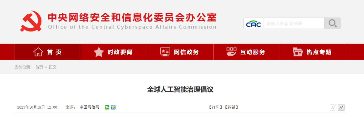 中央网信办今日午间发布《全球人工智能治理倡议》,欢迎各国政府、国际组织、企业、科研院校、民间机构和公民个人等各主体秉持共商共建共享的理念,协力共同促进人工智能治理。