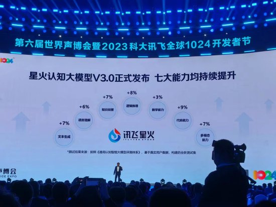 第六届世界声博会暨2023科大讯飞全球1024开发者节上,科大讯飞董事长刘庆峰宣布讯飞星火3.0正式发布,在文本生成、语言理解、知识回答、逻辑推理、数学能力等七大能力上均持续提升。