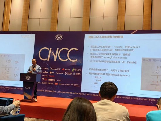 CNCC2023上,腾讯首席科学家、腾讯AI Lab及腾讯Robotics X实验室主任张正友发言指出,现在的大模型,只能预测下一个token,更像System 1,不管简单还是复杂问题,都是同样快速响应,但不能实现复杂的推理。