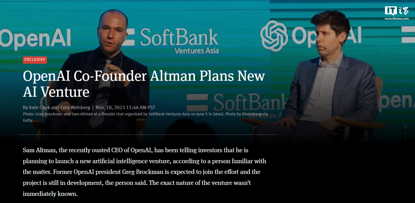 IT之家注意到,此前有报道称阿尔特曼和苹果前设计总监 Jony Ive 在讨论打造一款新的 AI 硬件设备,软银首席执行官孙正义也参与了此次谈话。