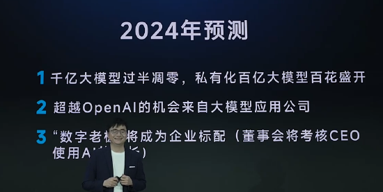 对于2024年技术发展趋势,傅盛给出了四点预言: