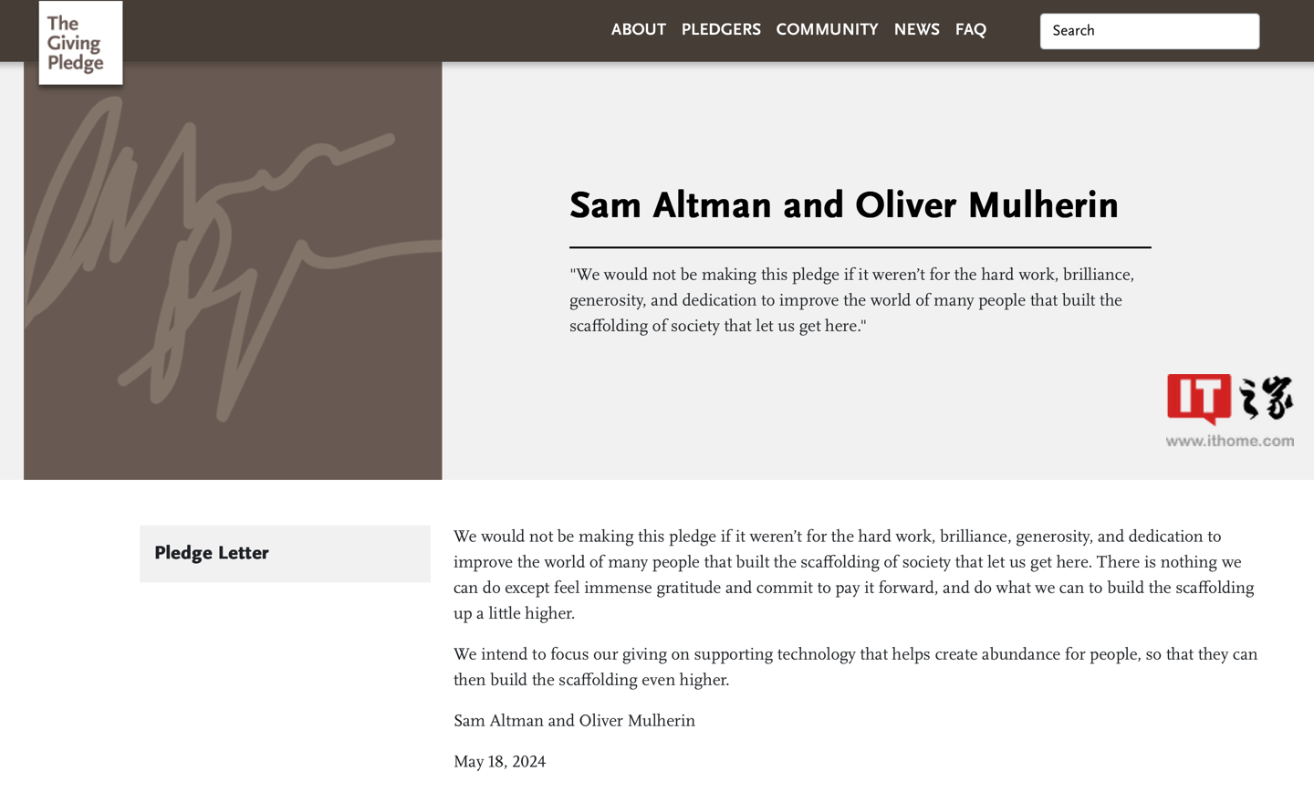 CNN 报道称,OpenAI 首席执行官阿尔特曼和他的丈夫成为最新签署“捐赠誓言”(Giving Pledge)的亿万富翁,这项慈善活动鼓励超级富豪将财富捐赠给慈善事业。
