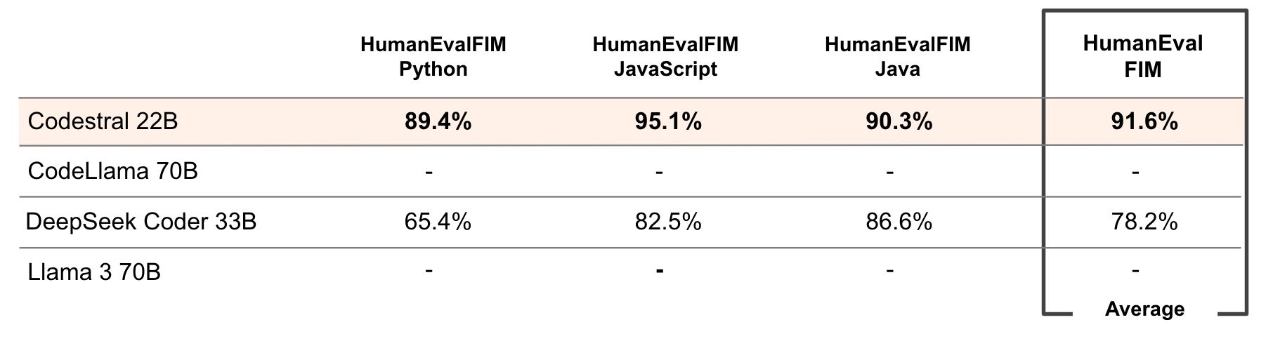和其它编程 LLM 类似,Codestral 可以帮助开发者完成各种功能,包括完成函数、编写测试、填充代码等等,降低代码中出现错误和漏洞的风险。