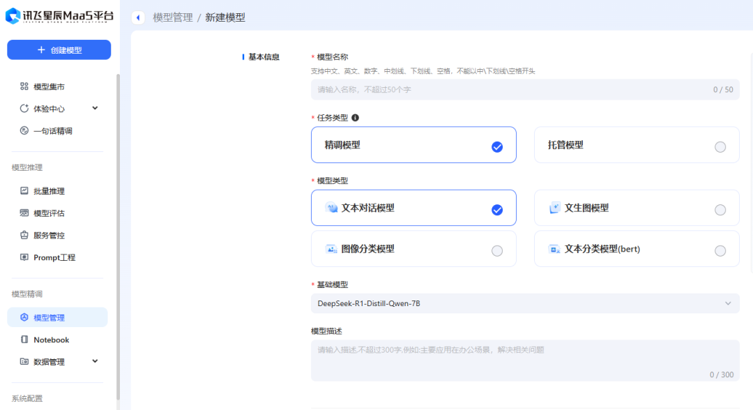 登录星辰 MaaS 平台,进入模型集市,选择模型点击「精调」;