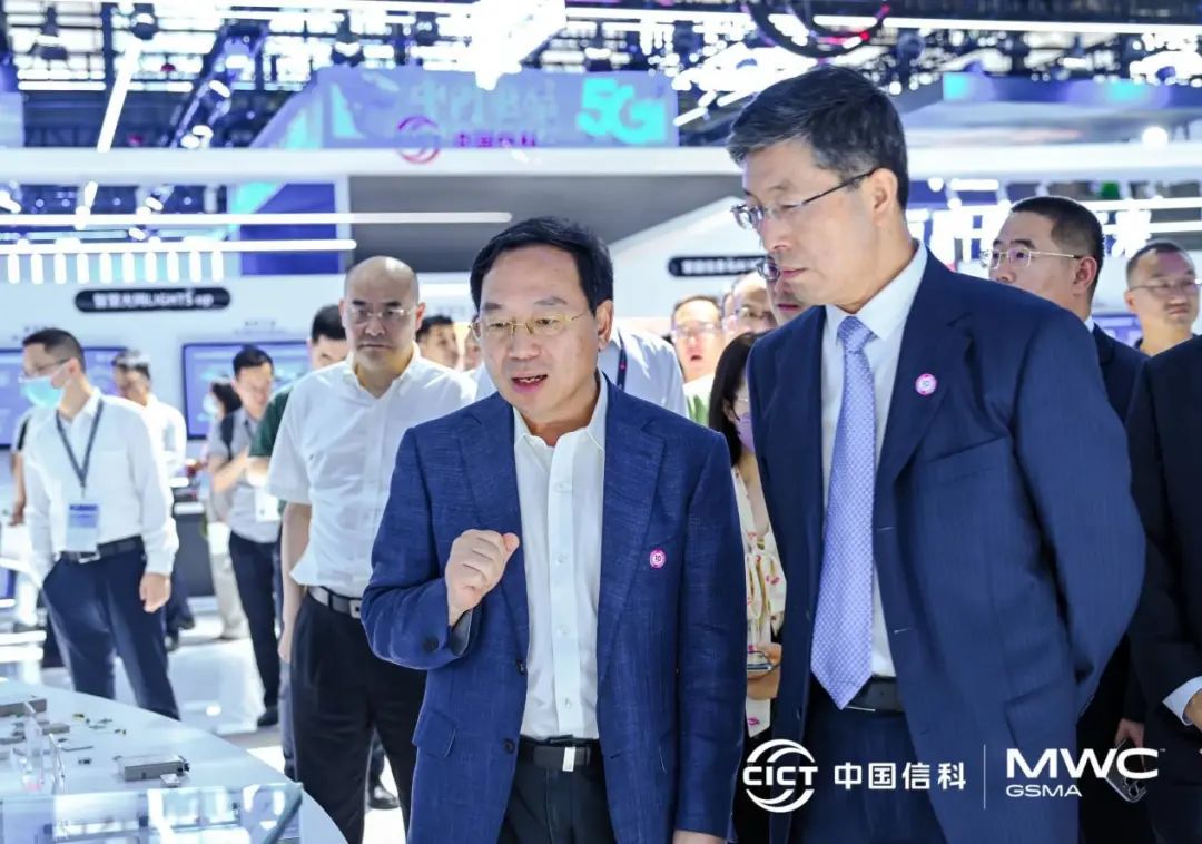 开展首日,工业和信息化部总工程师赵志国一行莅临中国信科展台,听取了中国信科副总经理、总工程师陈山枝关于集团布局6G预研方面取得的阶段性进展和成果介绍、积极支撑我国实现6G技术引领的战略目标,了解了智慧光网技术创新中400G 超长距现网应用取得的技术突破,以及智惠算力领域的全栈式液冷解决方案和数据中心内部互联的1.6T OSFP-XD DR8高速光模块产品。