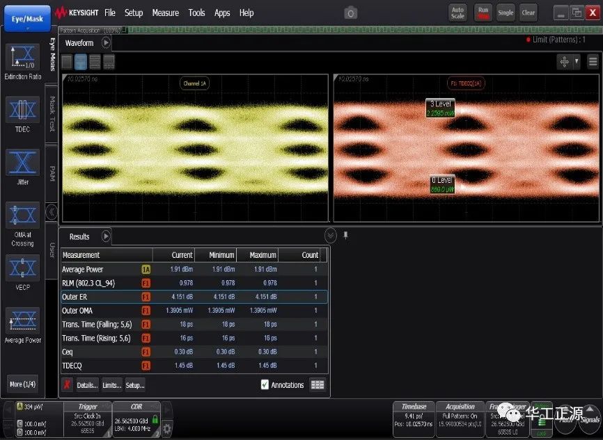 调制:可支持用户灵活选择2x25G NRZ和1x50G PAM4电信号调制,光信号为50G PAM4调制