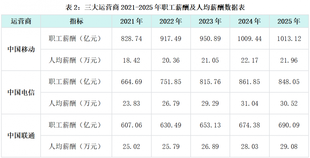 2021-2025年三大运营商人员规模与平均薪酬的变化,可以说是通信行业从“规模扩张”向“质量提升”转型的缩影。