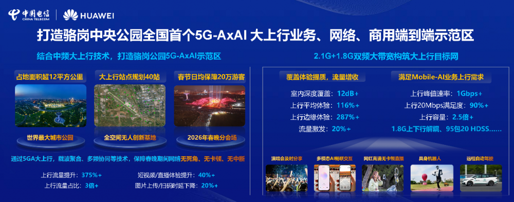 3月3日,中国电信安徽公司联合华为在合肥骆岗公园联合举办5G-A×AI大上行技术创新暨样板点发布会。作为中国电信首个大上行样板点发布会,本次发布会聚焦“智聚大上行 体验再升级”,发布了中国电信安徽公司5G-A×AI大上行样板点,向到场嘉宾展示了样板点内丰富的AI应用,并开展了题为“大上行赋能5G-A×AI,共创Mobile AI时代新价值”的圆桌论坛。值得一提的是,时值MWC26世界移动通信大会举办期间,安徽骆岗公园大上行示范区也作为中国电信“智聚大上行”样板,首次亮相这一通信领域的国际盛会。