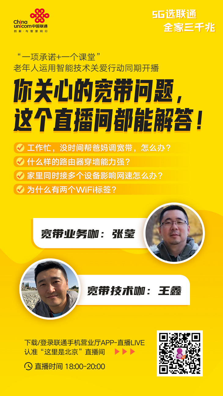 12月7日,联通手机营业厅APP上的“这里是北京”直播间一下子来了2万多观众。直播间里聊的都是很接地气的问题。比如:老人使用宽带出了问题,怕子女工作忙不好开口,怎么办?如何调试路由器能发挥出最大功效,从而享受到千兆网速?问题一出,回应频频,直播间的两位宽带专家逐一讲述破解之道。还特别针对老年人量身定制了不少宽带调测小技巧,虽然时值严冬,但直播间里涌现出了一股暖意。