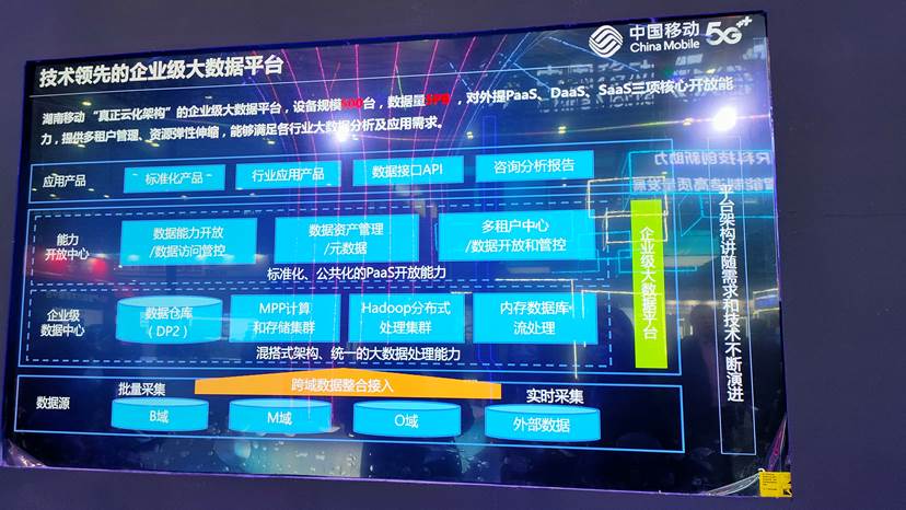 易明达指出,湖南移动拥有技术领先的“真正云化架构”的企业级大数据平台,设备规模500台,数据量5PB,对外提供PaaS、DaaS、SaaS三项核心开放能力,提供多租户管理、资源弹性伸缩,能够满足各行业大数据分析及应用需求。